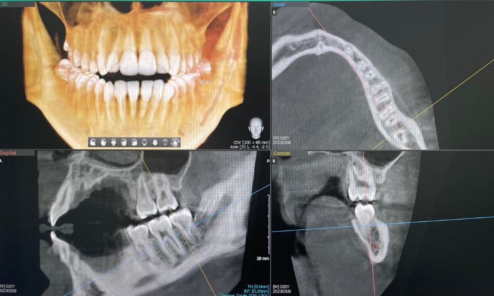 La CBCT (Cone Beam Computed Tomography) è una tecnica di imaging che sfrutta un fascio conico di radiazioni per ottenere immagini tridimensionali dell’anatomia dentale e ossea. Grazie a questa tecnologia, possiamo eseguire diagnosi accurate e pianificare interventi complessi con grande precisione, come l’implantologia. La CBCT è particolarmente utile per la valutazione del posizionamento degli impianti, dei denti inclusi e delle patologie ossee, offrendo un livello di dettaglio e di comfort superiore alle tecniche tradizionali.